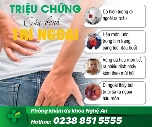 -Tiết dịch và rò rỉ phân: Khi bị trĩ ngoại, khu vực hậu môn sẽ liên tục tiết dịch. Người bệnh không đi đại tiện nhưng phân rò rỉ một ít ra ngoài. Vùng hậu môn luôn có cảm giác ẩm ướt ngứa ngáy rất khó chịu.
